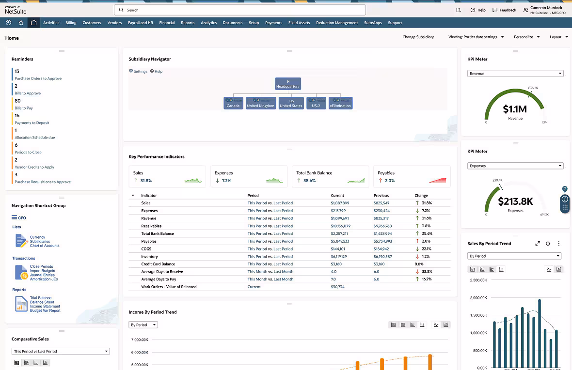 NetSuite supports the consistent implementation of many local tax regulations, different accounting standards and complex reporting requirements, especially in highly regulated international environments.